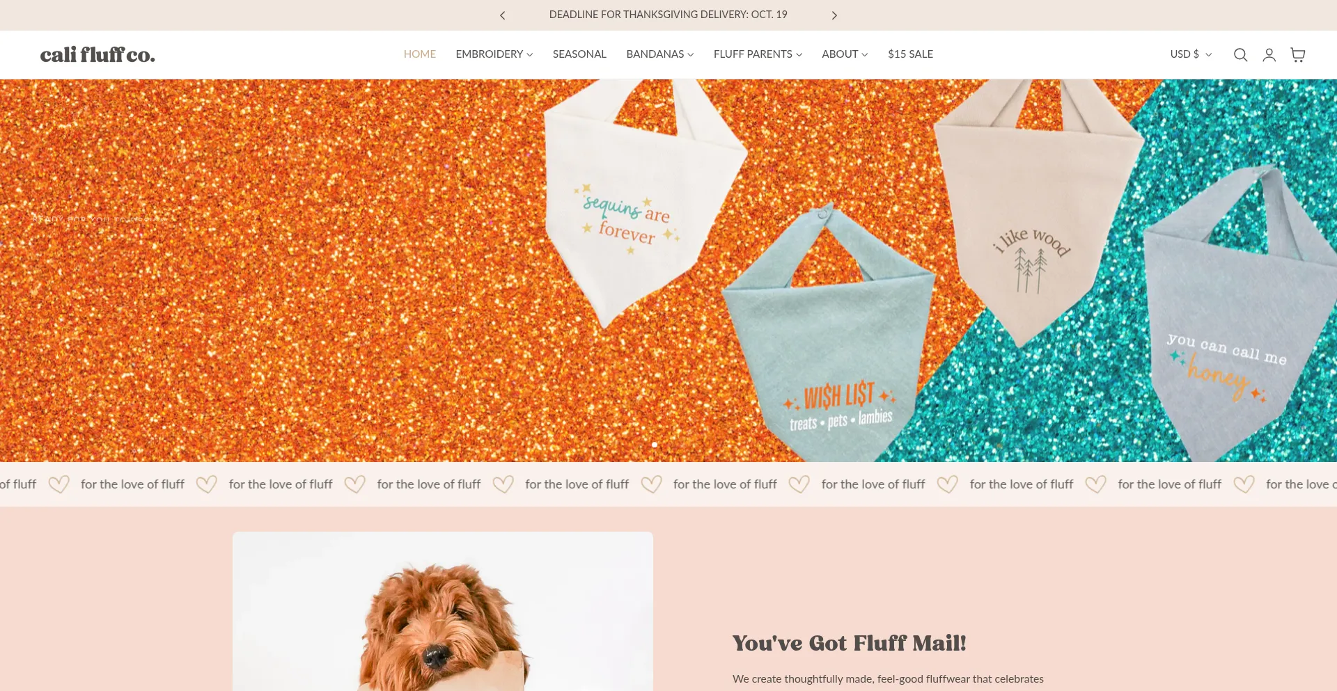 Cali Fluff Co. creates handcrafted dog bandanas made from organic cotton with custom embroidery. Shop pet accessories for stylish fluffs and their humans. Unique gifts for dog m...