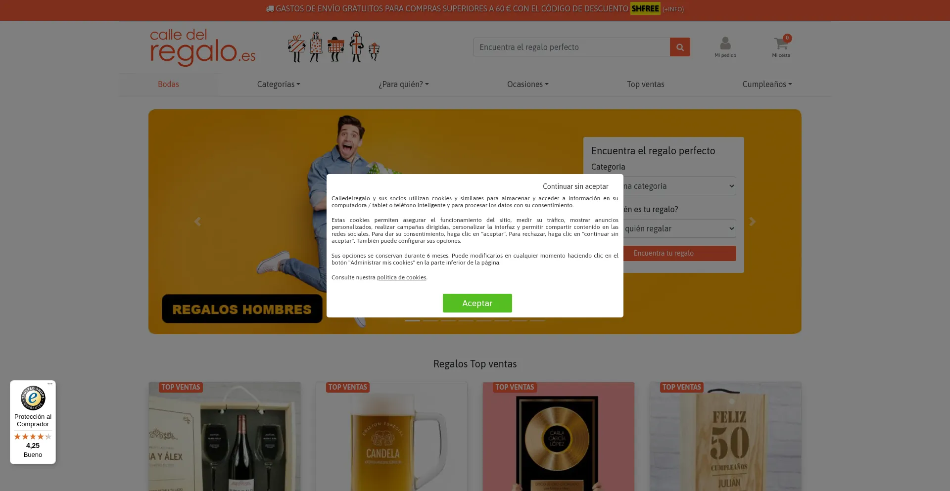 The website displays security certifications or trust seals from recognized authorities, indicating compliance with security standards, data protection protocols, or industry regulations. Trust seals from calledelregalo.es suggest adherence to established security practices and operational transparency.