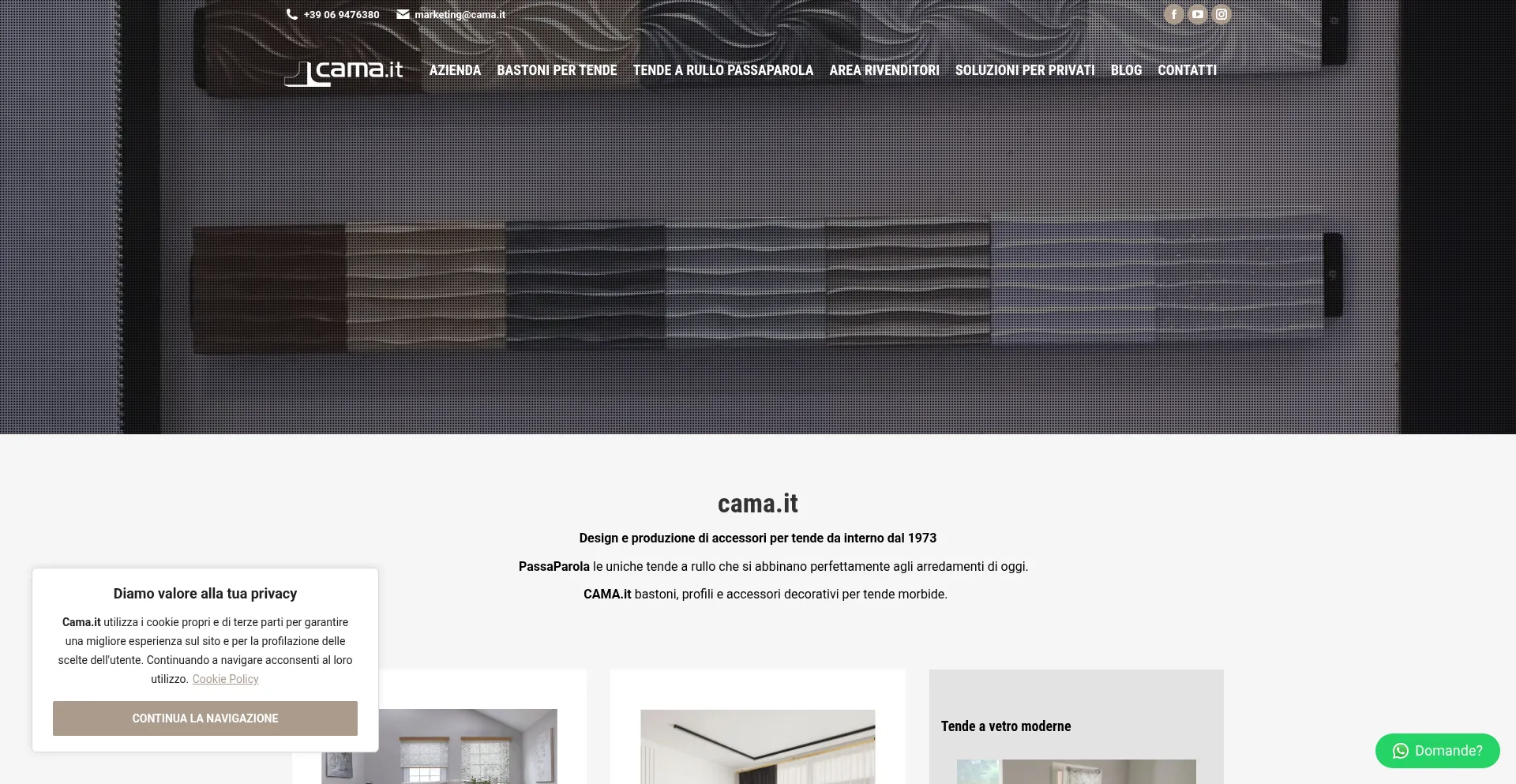The website implements cookie consent mechanisms in compliance with privacy regulations such as GDPR or CCPA. This demonstrates that cama.it adheres to data protection standards and provides users with control over personal data collection practices.