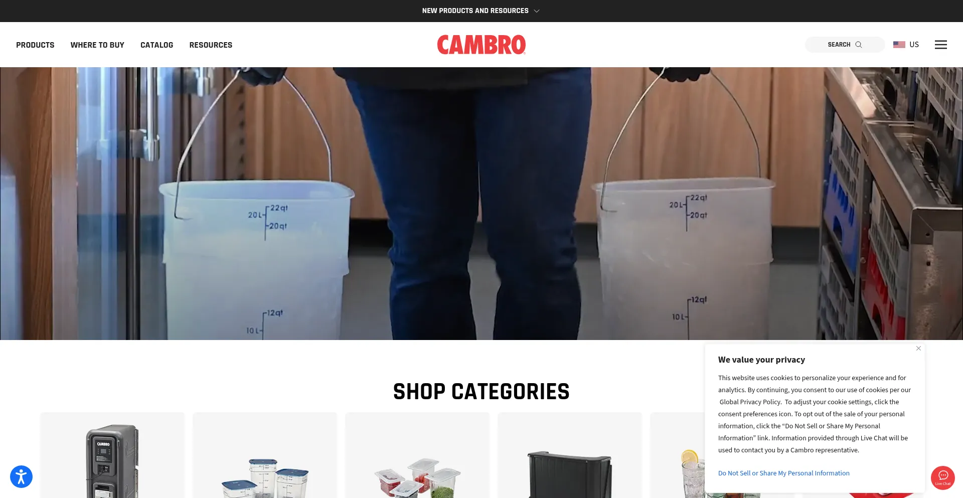 The website implements cookie consent mechanisms in compliance with privacy regulations such as GDPR or CCPA. This demonstrates that cambro.com adheres to data protection standards and provides users with control over personal data collection practices.