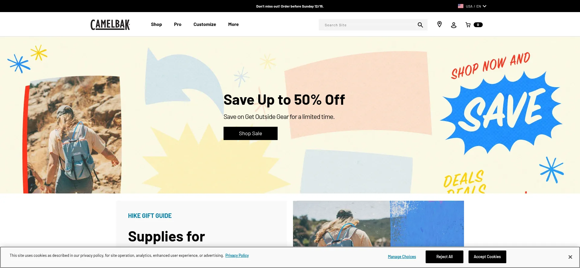 The website implements cookie consent mechanisms in compliance with privacy regulations such as GDPR or CCPA. This demonstrates that camelbak.com adheres to data protection standards and provides users with control over personal data collection practices.