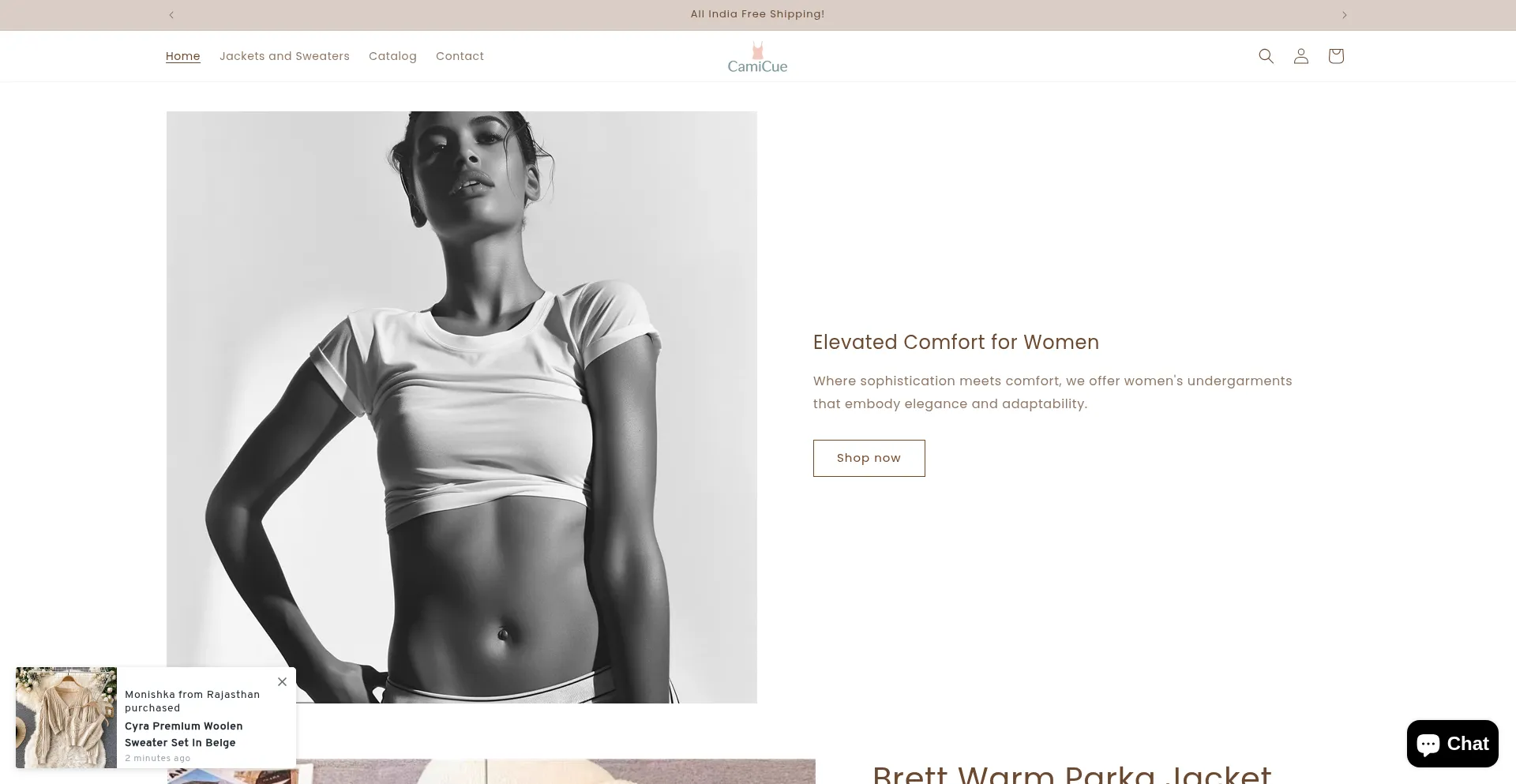 The camicue.in website utilizes free e-commerce platform solutions, which may indicate cost-conscious operations but could also suggest limitations in security features, customer support, or advanced functionality compared to enterprise-grade solutions.