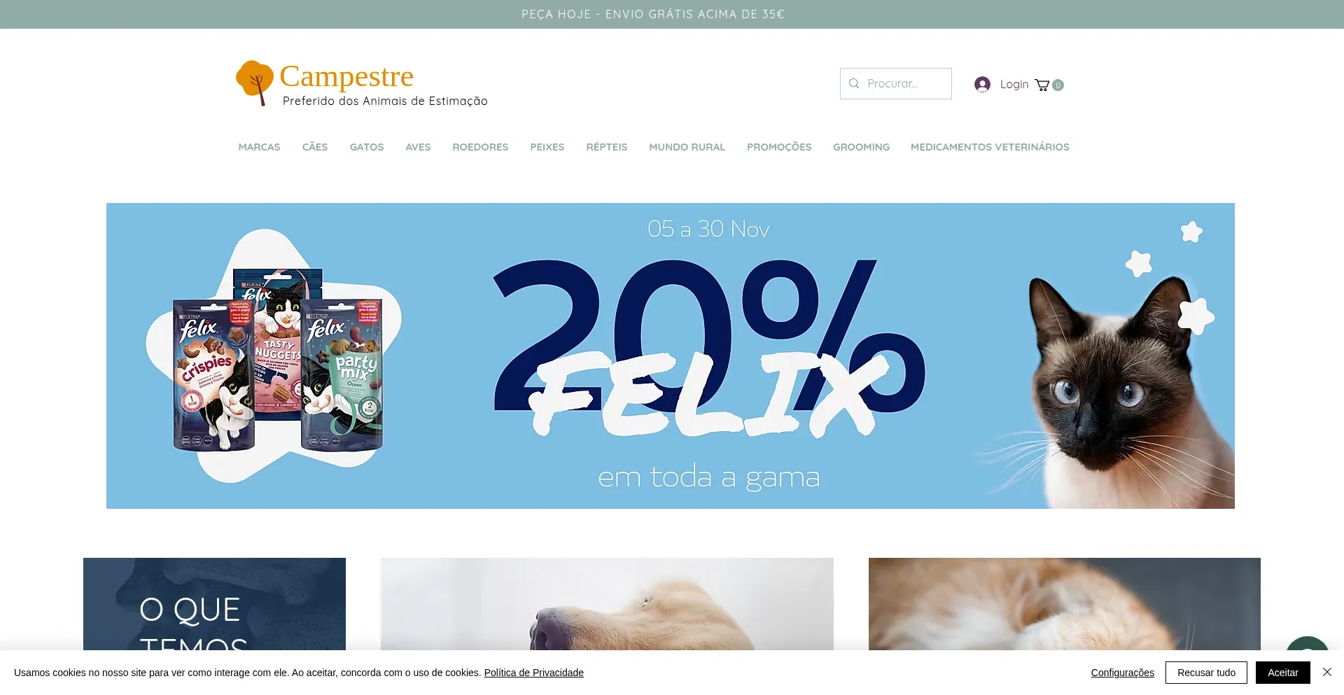 Pet Shop Online - A Campestre oferece produtos de qualidade para animais de estimação de todas as espécies - Alimentação, saúde e acessórios, todos a um preço irresistí...