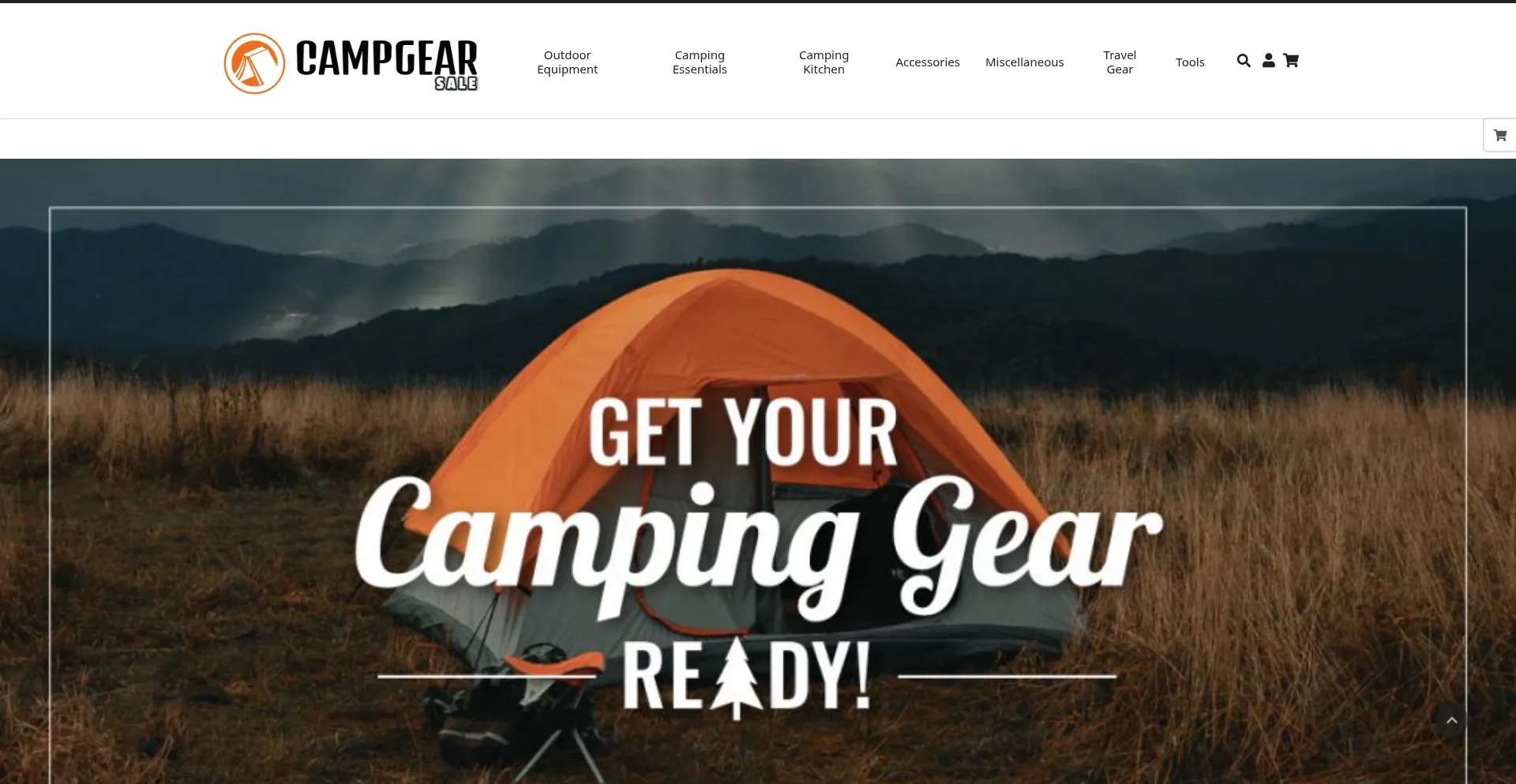 Analysis indicates that campgearsale.com operates as an e-commerce platform facilitating online transactions for goods or services. The website implements shopping cart functionality, payment processing systems, and product catalog features typical of commercial retail operations.