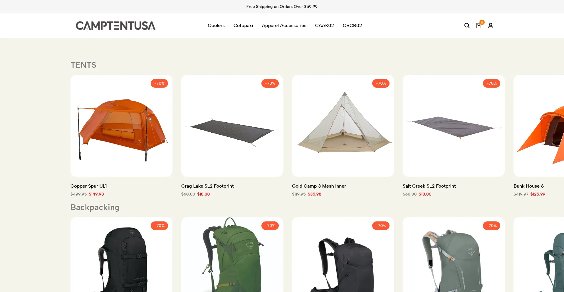 Analysis indicates that camptentusa.com operates as an e-commerce platform facilitating online transactions for goods or services. The website implements shopping cart functionality, payment processing systems, and product catalog features typical of commercial retail operations.