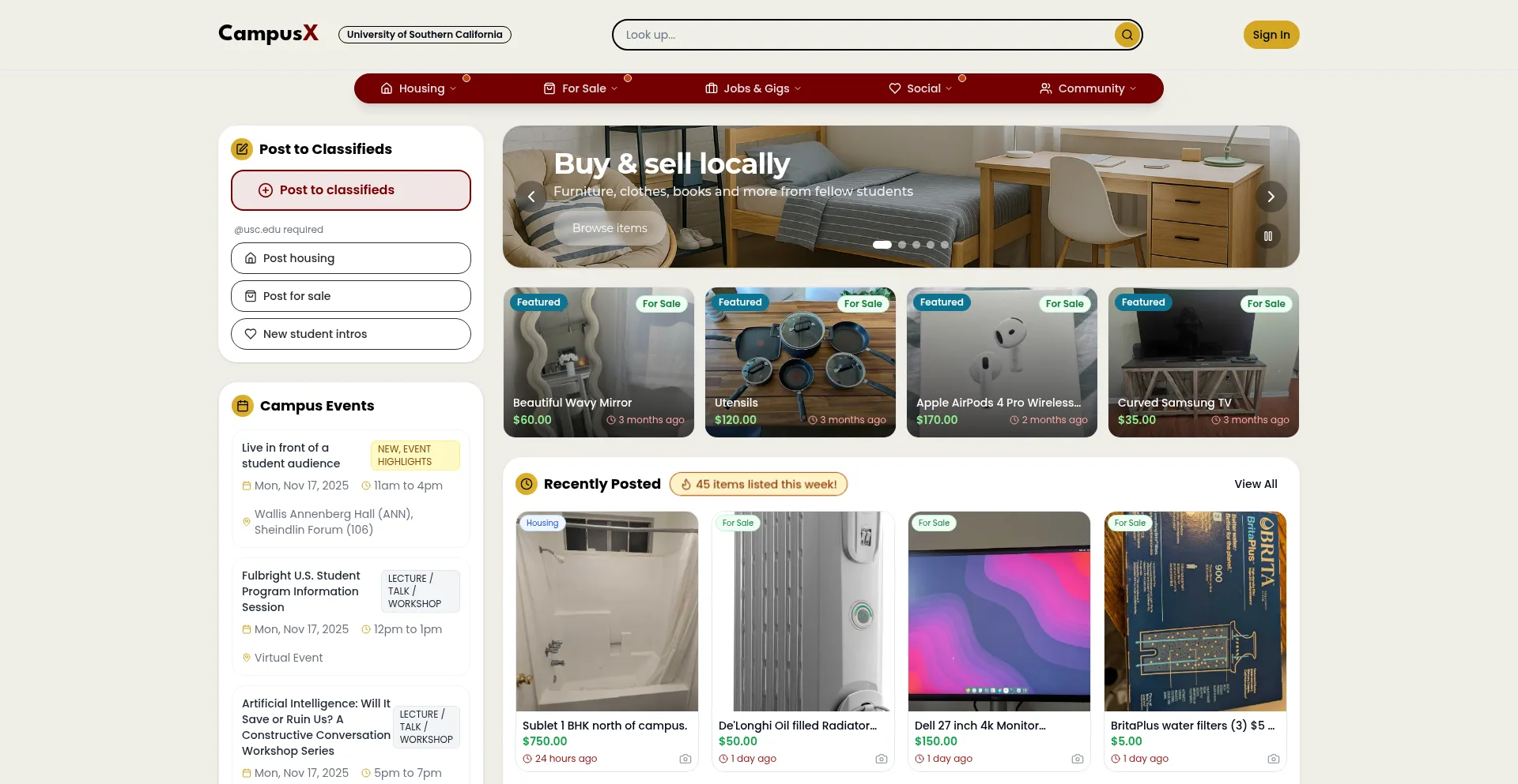 Buy, sell, and exchange items within the USC community. CampusX is the premier marketplace for USC students.