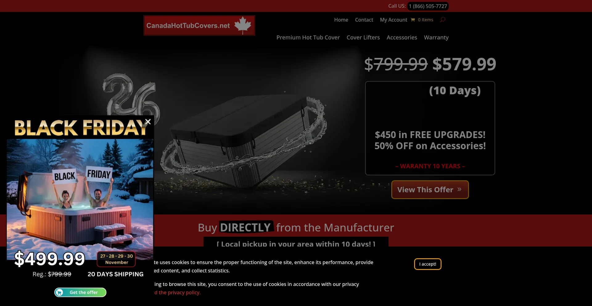 Analysis indicates that canadahottubcovers.net operates as an e-commerce platform facilitating online transactions for goods or services. The website implements shopping cart functionality, payment processing systems, and product catalog features typical of commercial retail operations.
