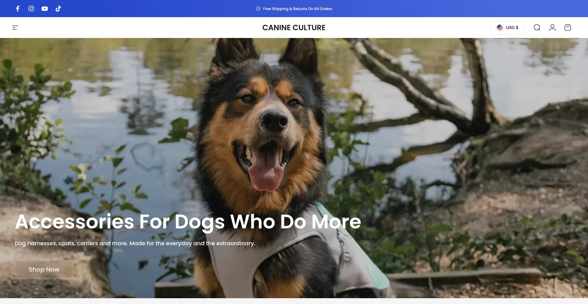 Our analyzer determines that website caninecultureuk.com is using Shopify CMS. Shopify is a popular e-commerce platform, powering around 4.4% of websites globally.
