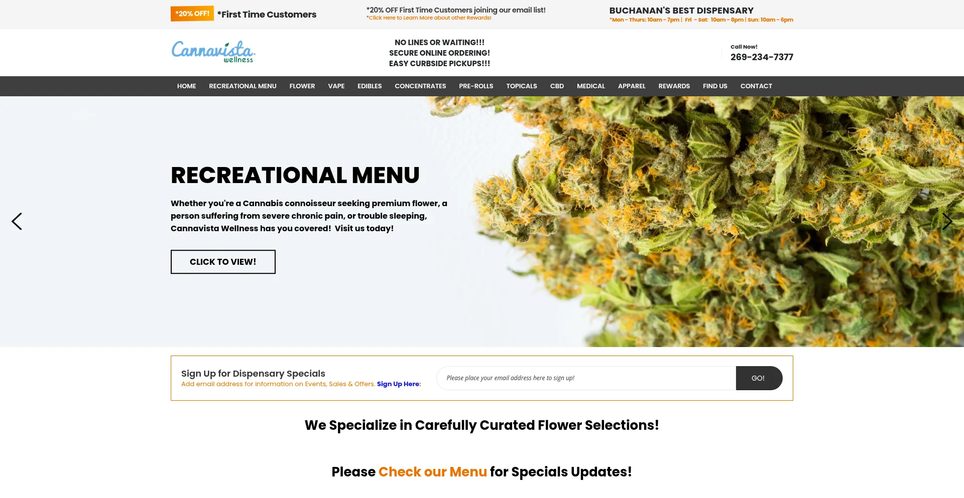 Discover top-quality cannabis at Medical Cannavista Wellness in Buchanan, Michigan - your go-to for premium flower, pre-rolls, CBD and edibles. Shop the best now!
