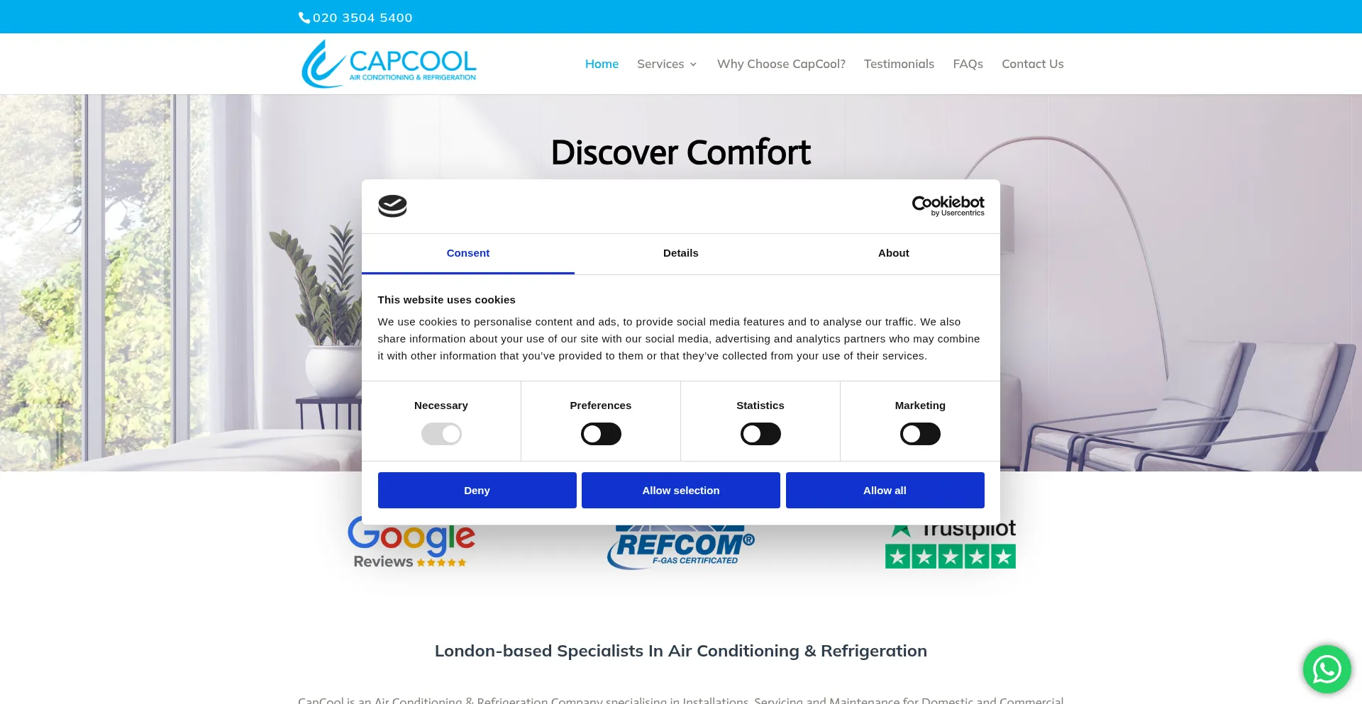 The website implements cookie consent mechanisms in compliance with privacy regulations such as GDPR or CCPA. This demonstrates that capcool.co.uk adheres to data protection standards and provides users with control over personal data collection practices.