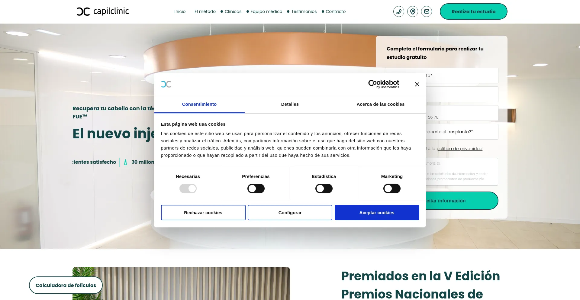 The website implements cookie consent mechanisms in compliance with privacy regulations such as GDPR or CCPA. This demonstrates that capilclinic.es adheres to data protection standards and provides users with control over personal data collection practices.