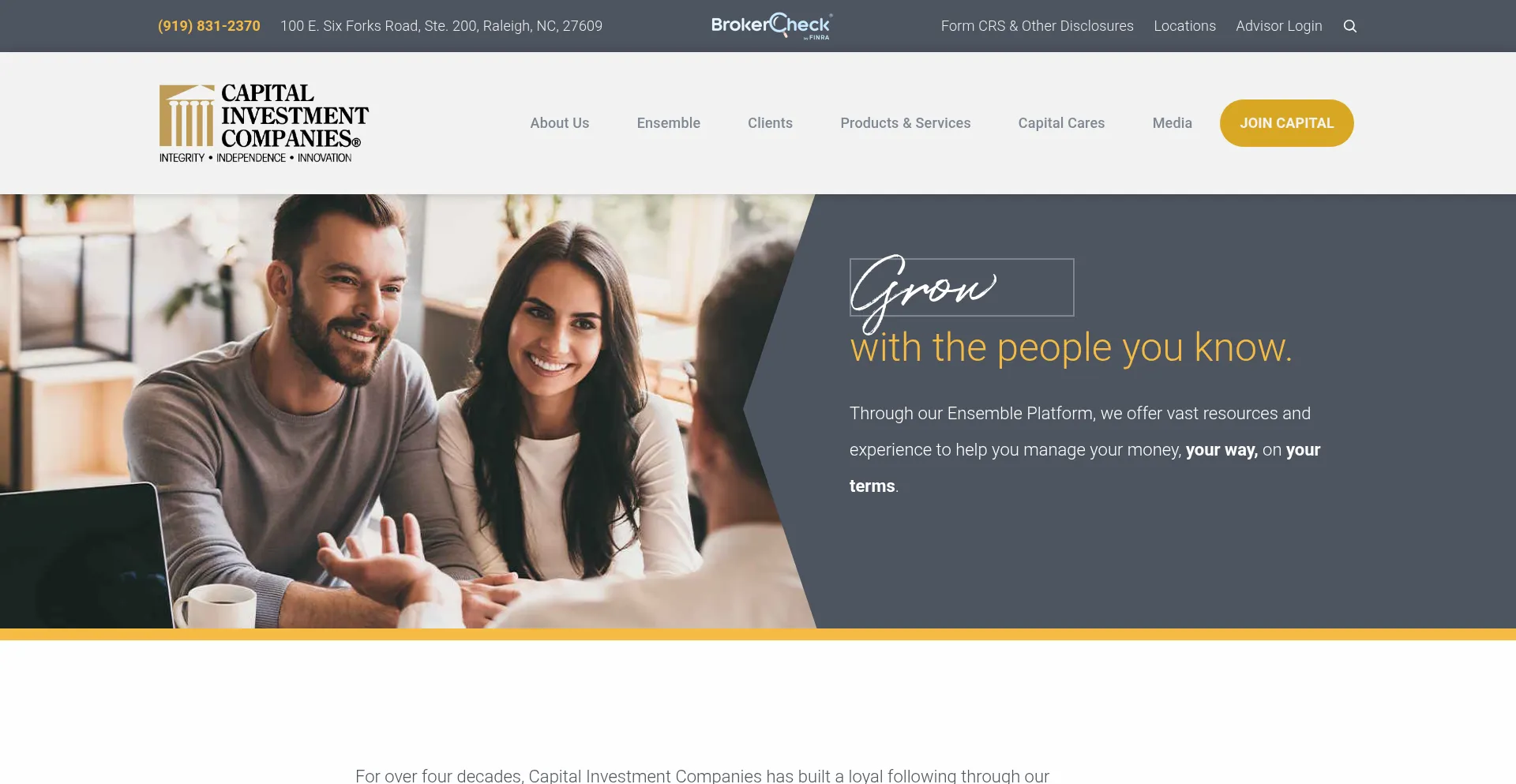 For four decades, Capital Investment Companies has grown to be one of the largest independent financial services and brokerage firms in the Southeast.