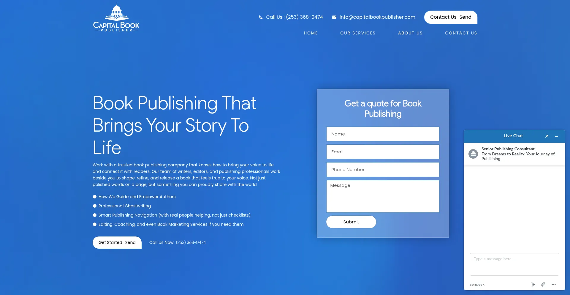 The capitalbookpublisher.com website implements data collection forms requesting personal information including names, email addresses, phone numbers, or other sensitive details. Users should verify the legitimacy of it and review privacy policies before submitting personal data.
