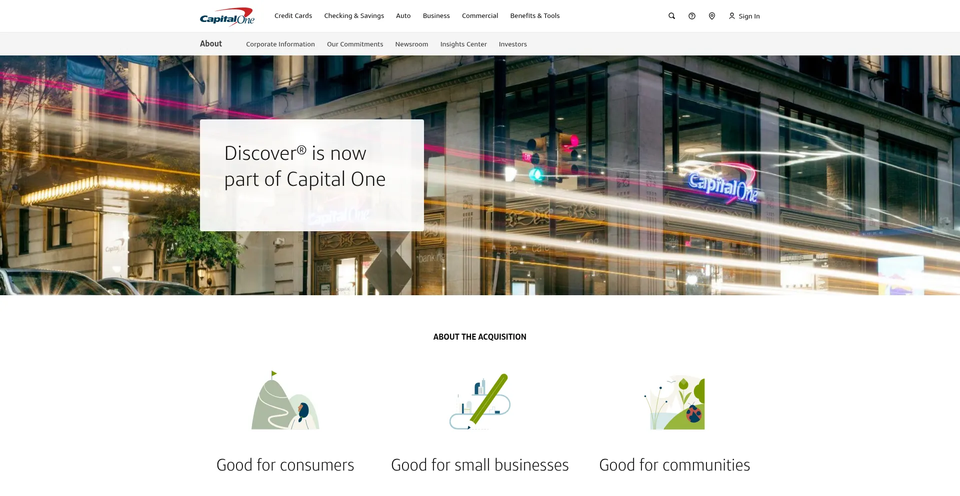 Capital One and Discover have a shared heritage of challenging the status quo and helping customers succeed. Since its founding, Capital One has been guided by a belief that no ...