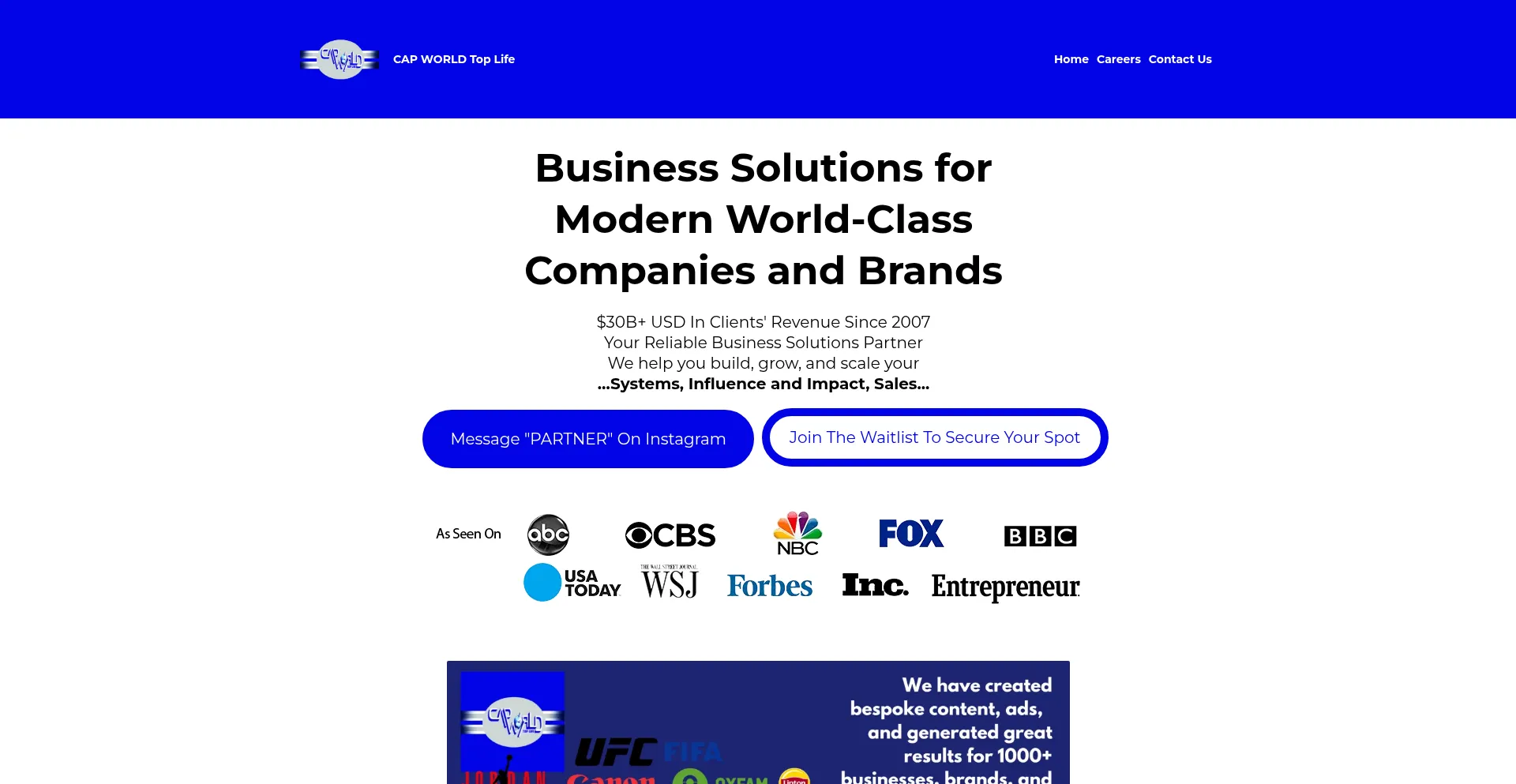 The Team Behind $30B+ (USD) in Client Revenue; Without Relying On: Going Viral, Running Unprofitable Ads, or Selling Your Soul. We are CAP WORLD Top Life.