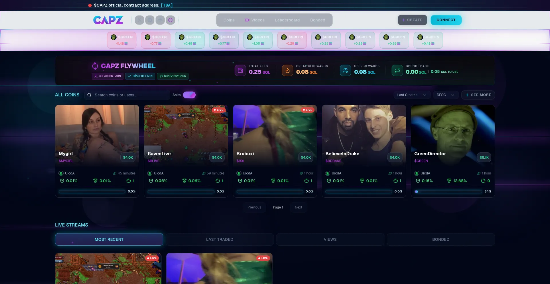 CAPZ is a next-generation Solana launchpad combining Dynamic Bonding Curve token launches, live streaming, and real-time social trading. Anyone can deploy tokens, creators earn ...