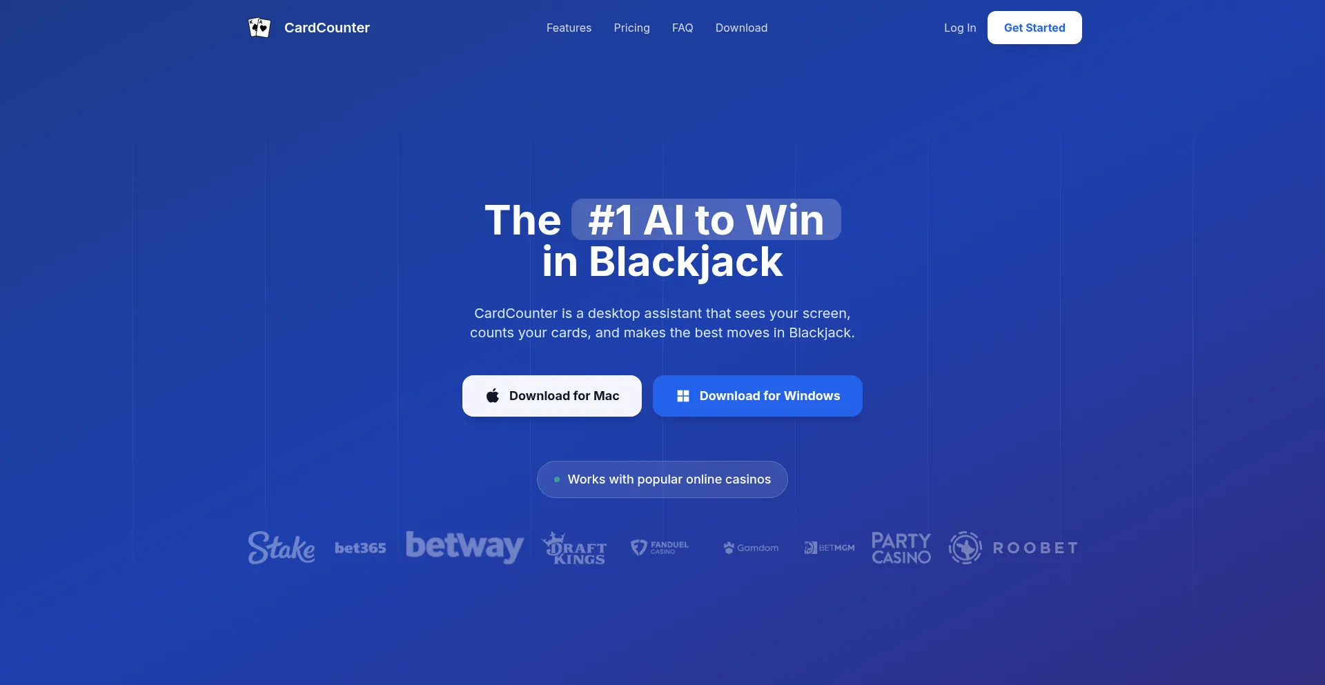 CardCounter is a desktop assistant that sees your screen, counts your cards, and makes the best moves in Blackjack.