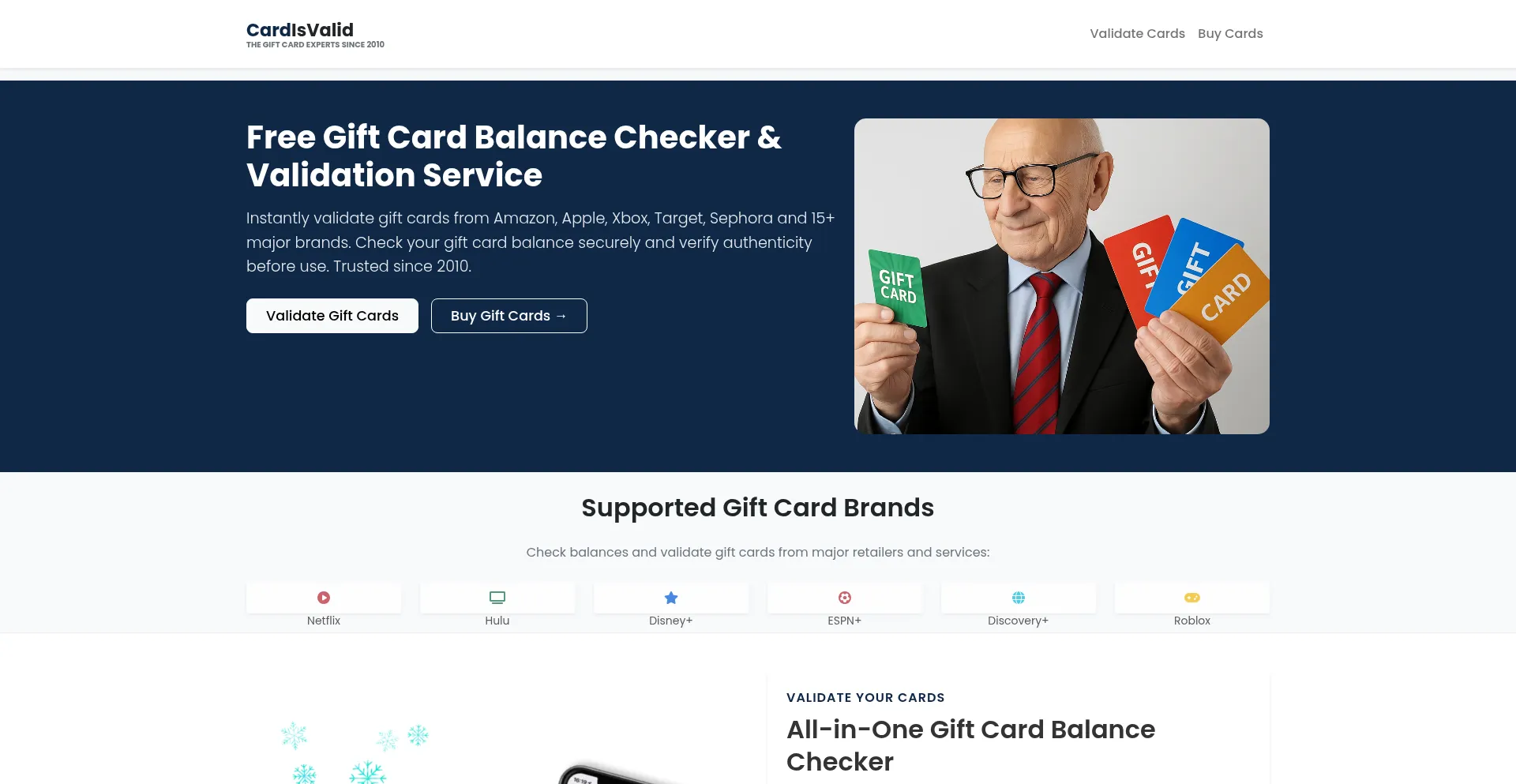 CardIsValid - Instant Gift Card Balance Checker & Validation Service