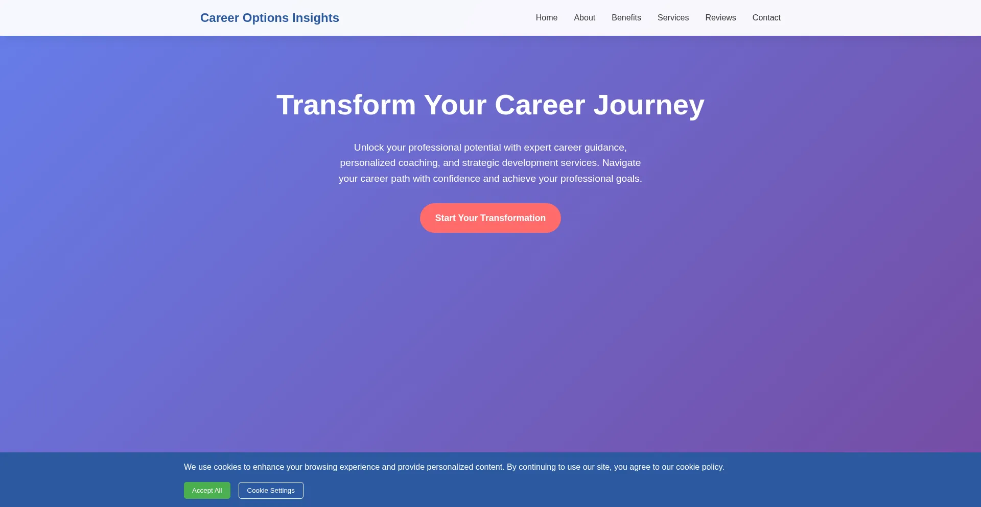 The website implements cookie consent mechanisms in compliance with privacy regulations such as GDPR or CCPA. This demonstrates that careeroptionsinsights.digital adheres to data protection standards and provides users with control over personal data collection practices.