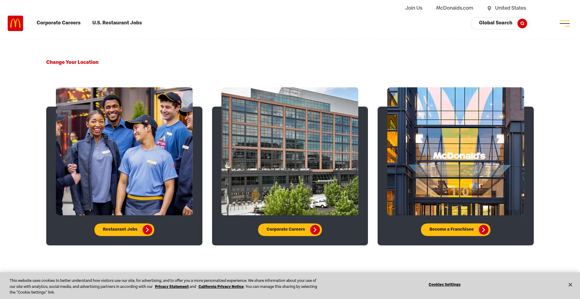 The website implements cookie consent mechanisms in compliance with privacy regulations such as GDPR or CCPA. This demonstrates that careers.mcdonalds.com adheres to data protection standards and provides users with control over personal data collection practices.