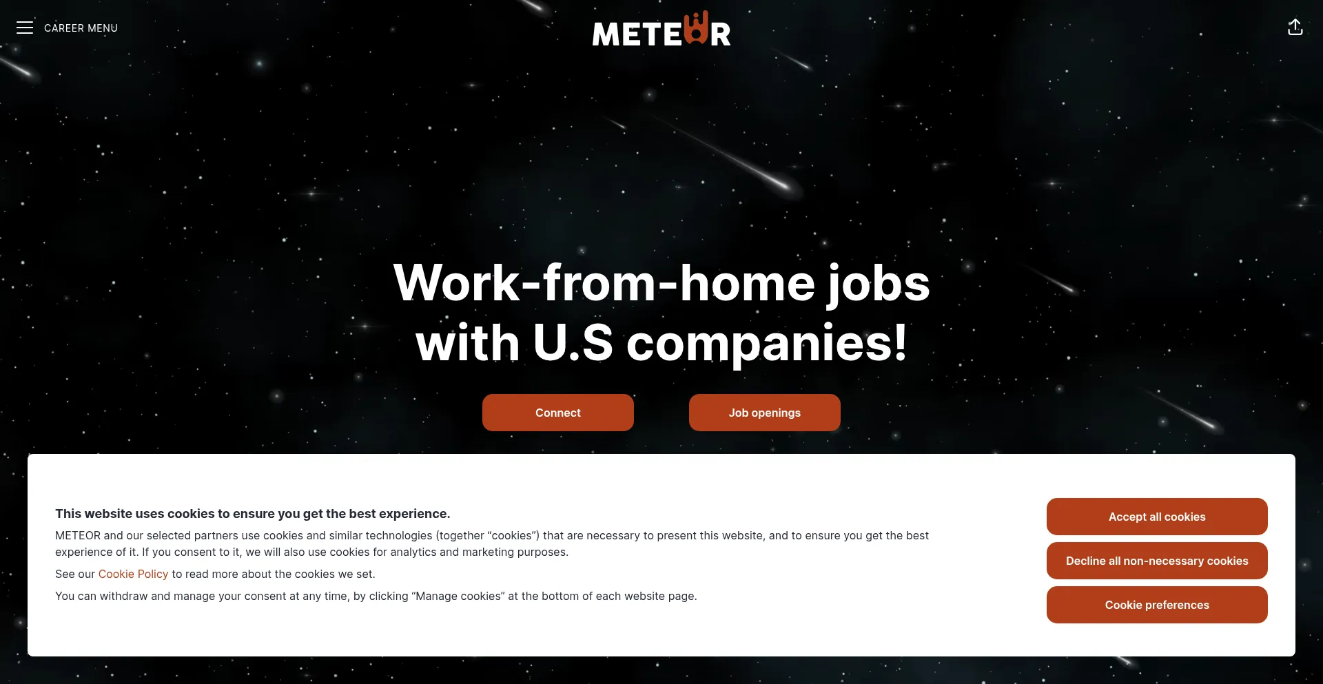 The website implements cookie consent mechanisms in compliance with privacy regulations such as GDPR or CCPA. This demonstrates that careers.trymeteor.com adheres to data protection standards and provides users with control over personal data collection practices.