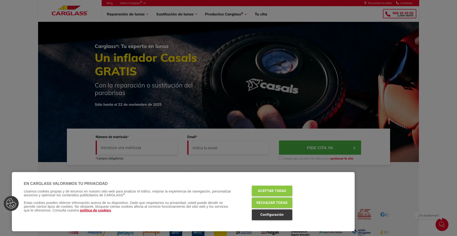 The website implements cookie consent mechanisms in compliance with privacy regulations such as GDPR or CCPA. This demonstrates that carglass.es adheres to data protection standards and provides users with control over personal data collection practices.
