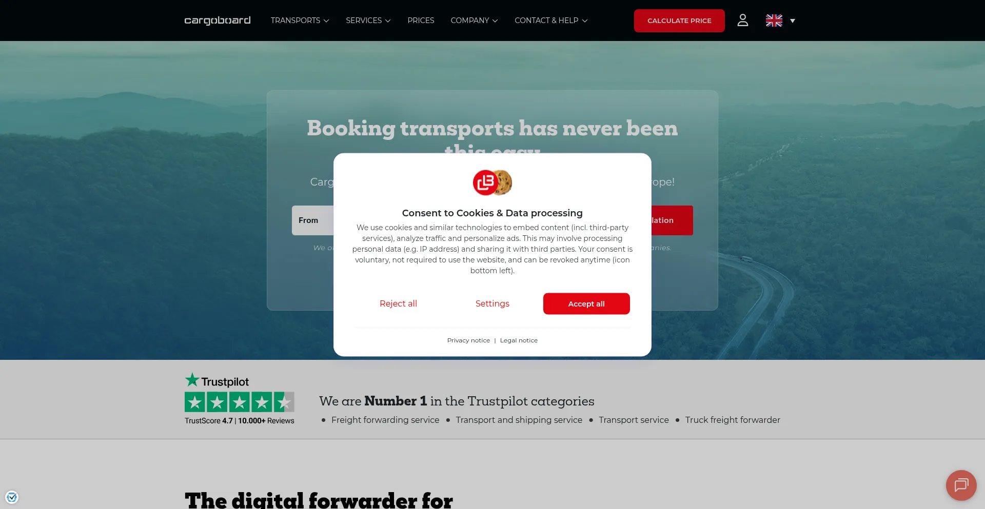 The website implements cookie consent mechanisms in compliance with privacy regulations such as GDPR or CCPA. This demonstrates that cargoboard.com adheres to data protection standards and provides users with control over personal data collection practices.