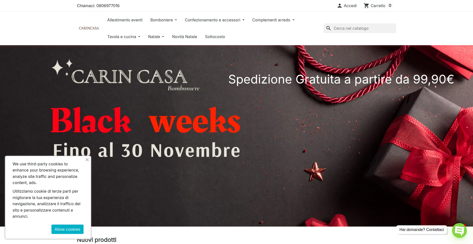 Analysis indicates that carincasa.it operates as an e-commerce platform facilitating online transactions for goods or services. The website implements shopping cart functionality, payment processing systems, and product catalog features typical of commercial retail operations.