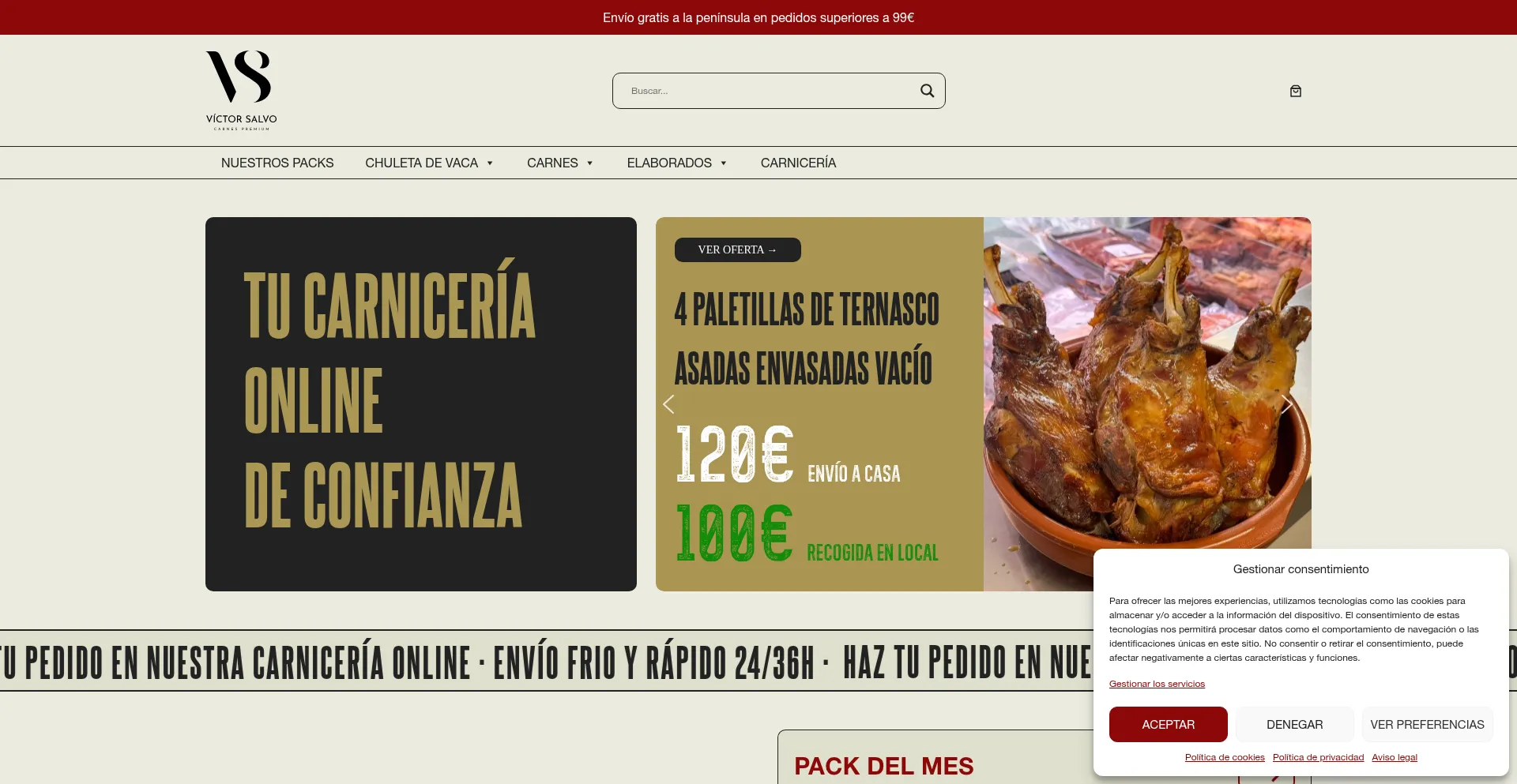Analysis indicates that carniceriavictorsalvo.com operates as an e-commerce platform facilitating online transactions for goods or services. The website implements shopping cart functionality, payment processing systems, and product catalog features typical of commercial retail operations.