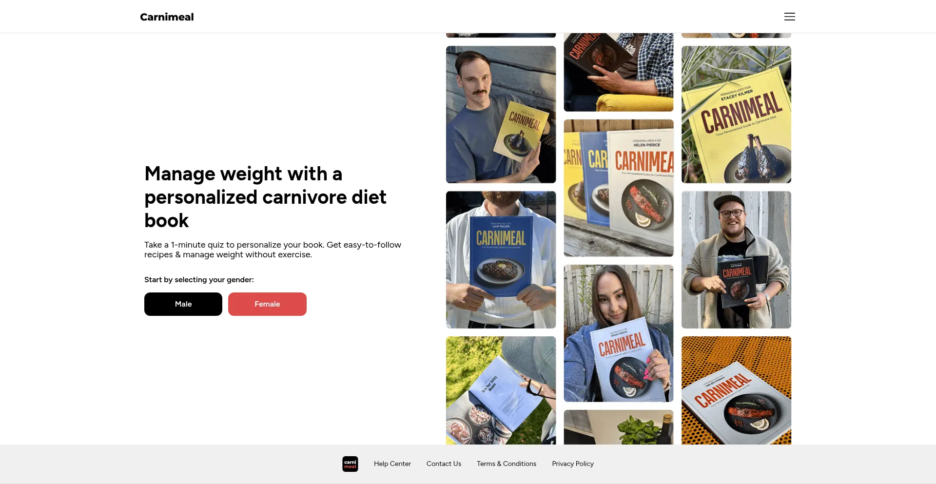 A fully personalized Carnivore diet book to lose weight, improve health and grow muscle. Get your personalized copy of Carnimeal today!