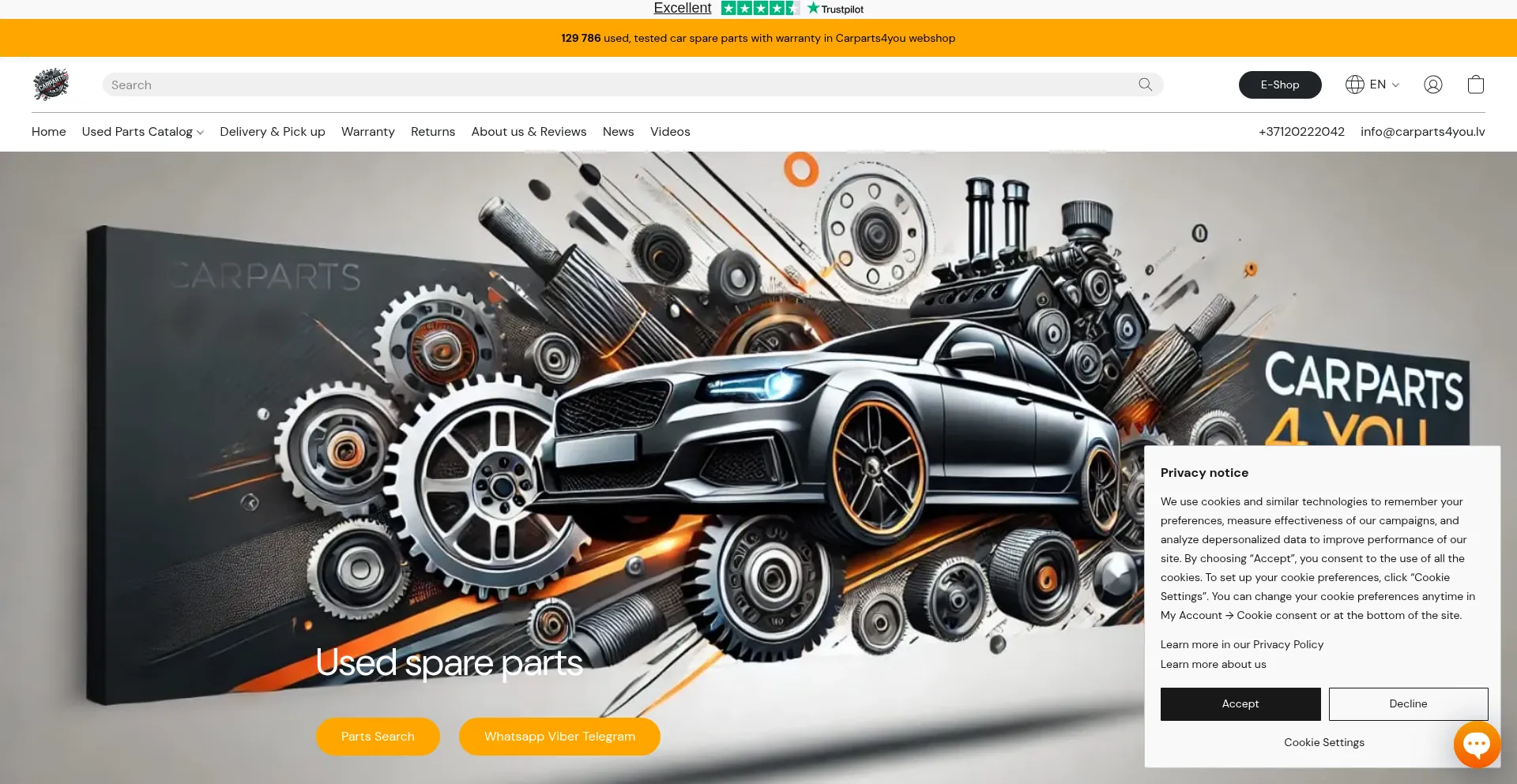 The website implements cookie consent mechanisms in compliance with privacy regulations such as GDPR or CCPA. This demonstrates that carparts4you.lv adheres to data protection standards and provides users with control over personal data collection practices.