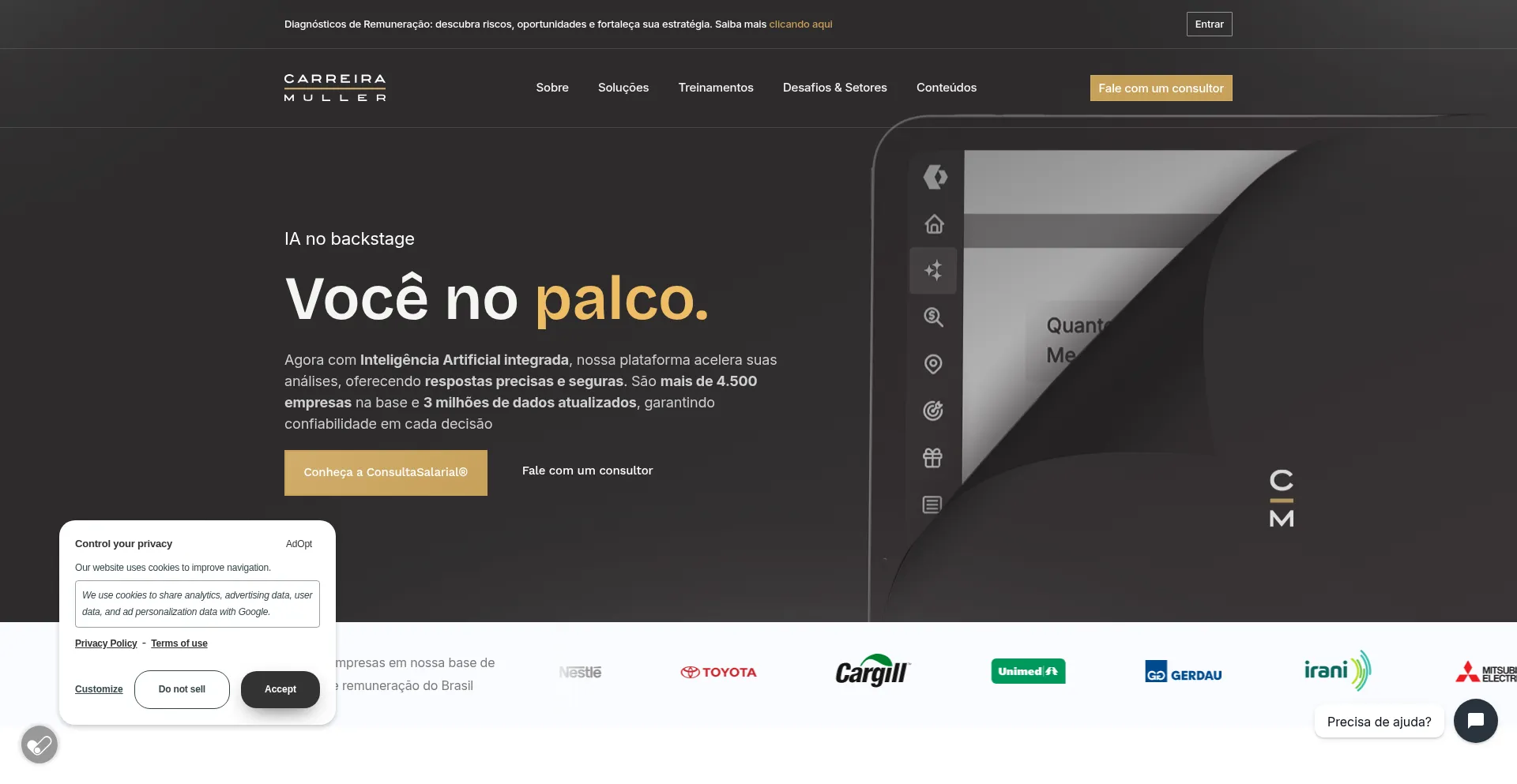 The website implements cookie consent mechanisms in compliance with privacy regulations such as GDPR or CCPA. This demonstrates that carreira.com.br adheres to data protection standards and provides users with control over personal data collection practices.
