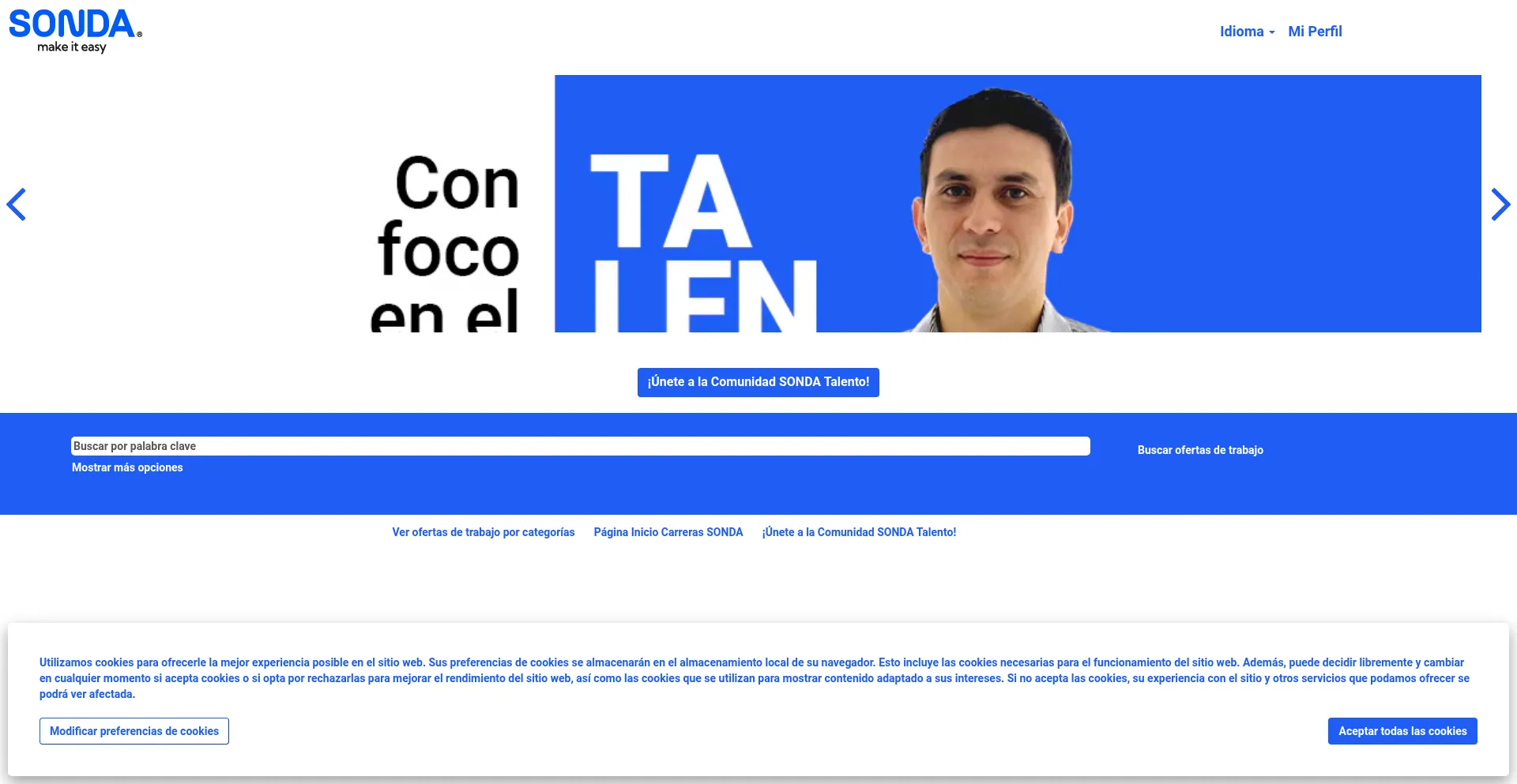 carrera.sonda.com uses Bootstrap, a widely-adopted open-source framework for responsive web development. Bootstrap enables efficient creation of mobile-friendly interfaces through standardized components and styling.