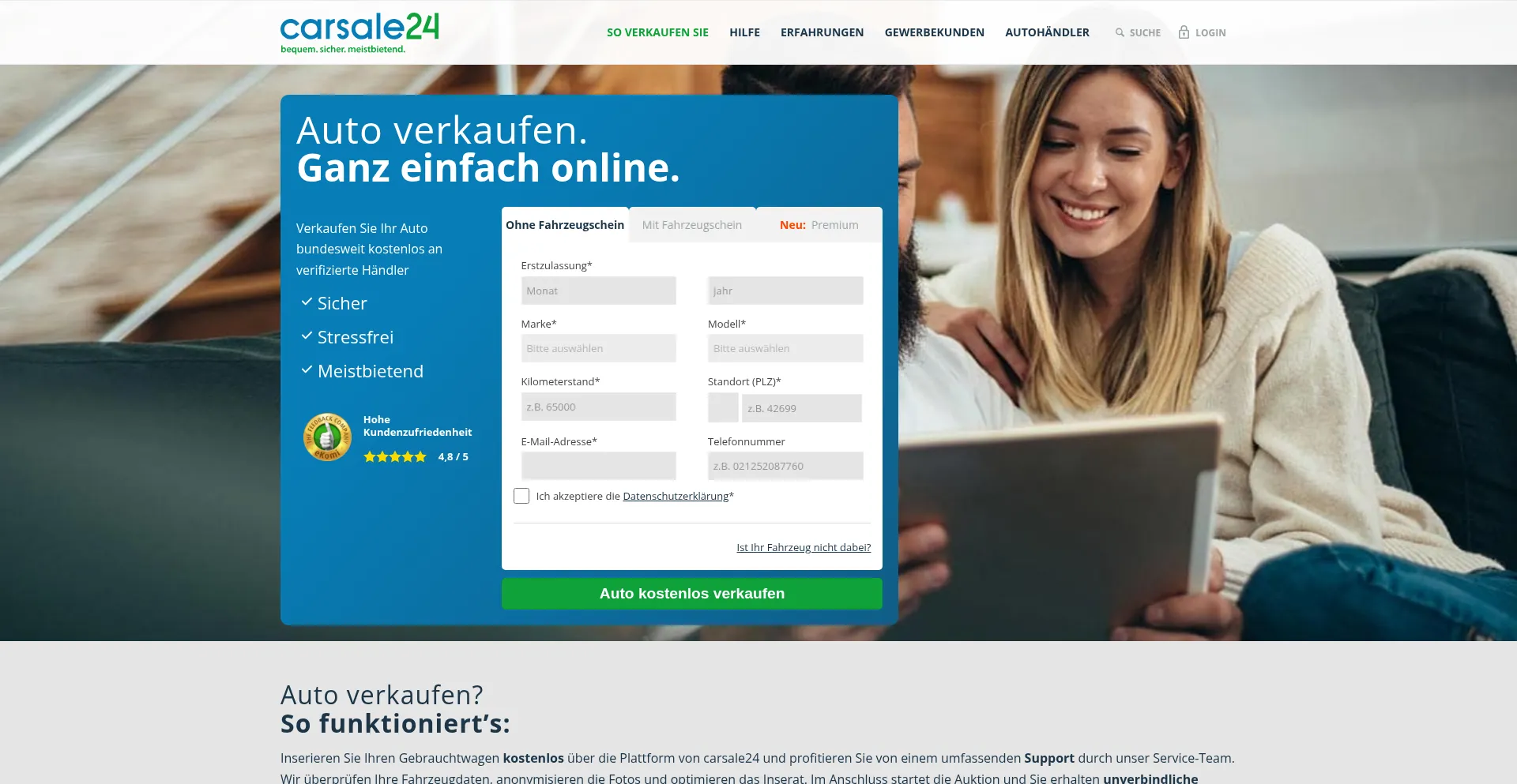 Autoverkauf mit carsale24 ► schnell & einfach✔ meistbietend an geprüfte Händler✔ inkl. persönlicher Beratung✔ und Abholung am Wunschort - jetzt testen!
