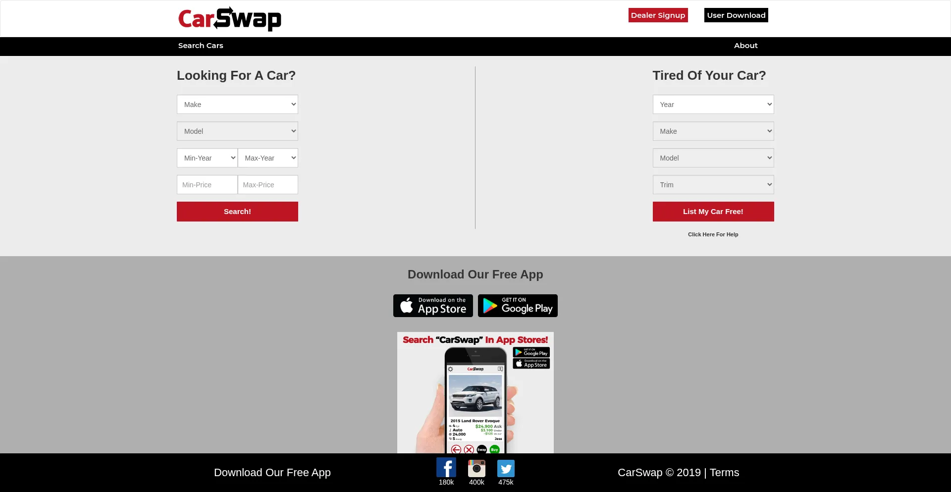 maxcdn.bootstrapcdn.com cdn.jsdelivr.net www.twitter.com www.facebook.com apps.apple.com www.instagram.com fonts.googleapis.com info.carswap.me fonts.gstatic.com ajax.googleapis.com +3 more