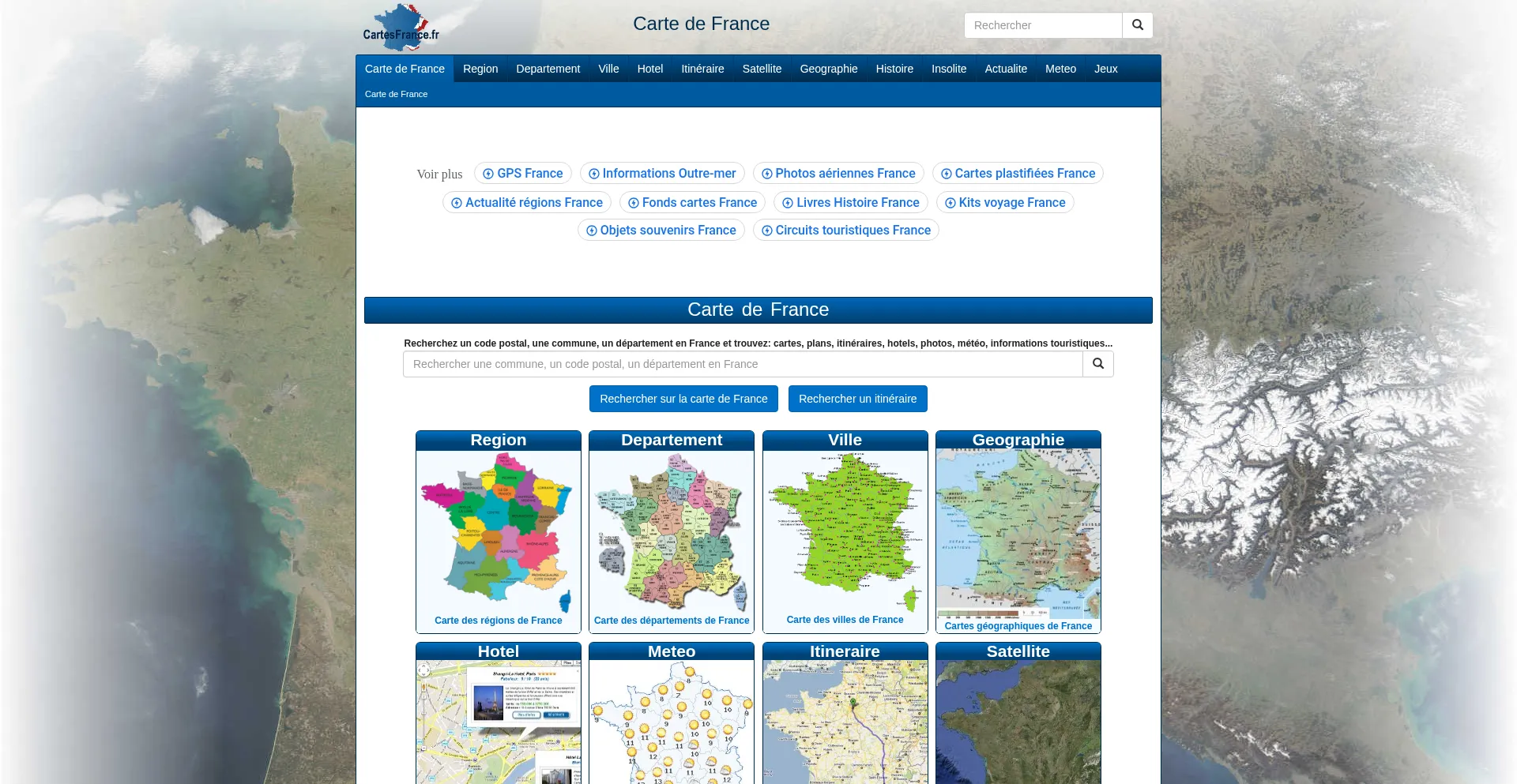 Site web informatif conçu comme un guide touristique et pédagogique organisé autour de cartes géographiques françaises
