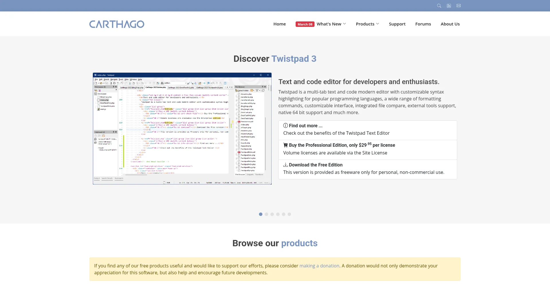 Home page for Carthago Software, here you can our products like the Twistpad text editor, DeskTask the popular add-on for Outlook and other utilities for Microsoft Windows. For ...