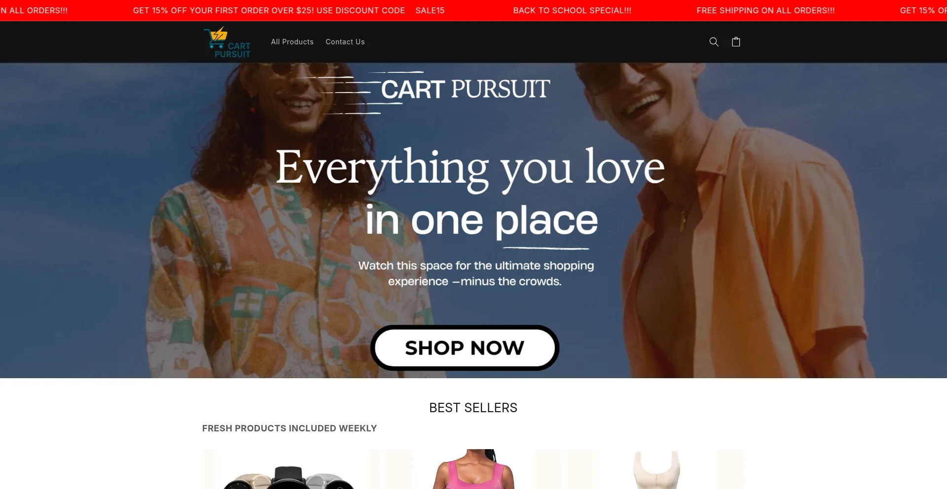 Our analyzer determines that website cartpursuit.com is using Shopify CMS. Shopify is a popular e-commerce platform, powering around 4.4% of websites globally.