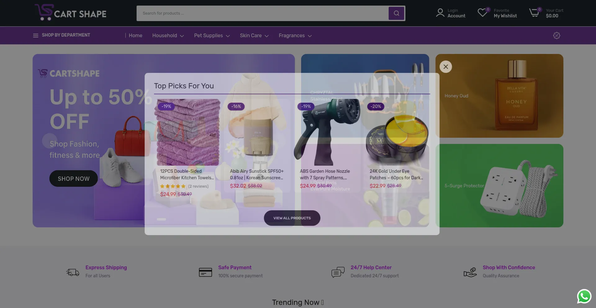 The cartshape.com website utilizes free e-commerce platform solutions, which may indicate cost-conscious operations but could also suggest limitations in security features, customer support, or advanced functionality compared to enterprise-grade solutions.