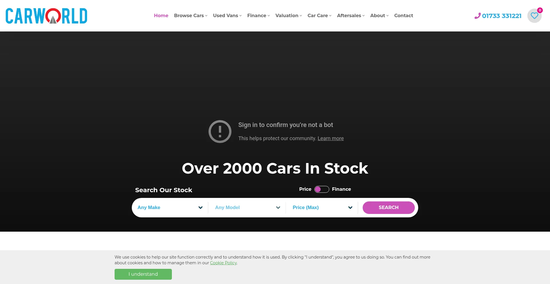 The website implements cookie consent mechanisms in compliance with privacy regulations such as GDPR or CCPA. This demonstrates that carworld.uk.com adheres to data protection standards and provides users with control over personal data collection practices.