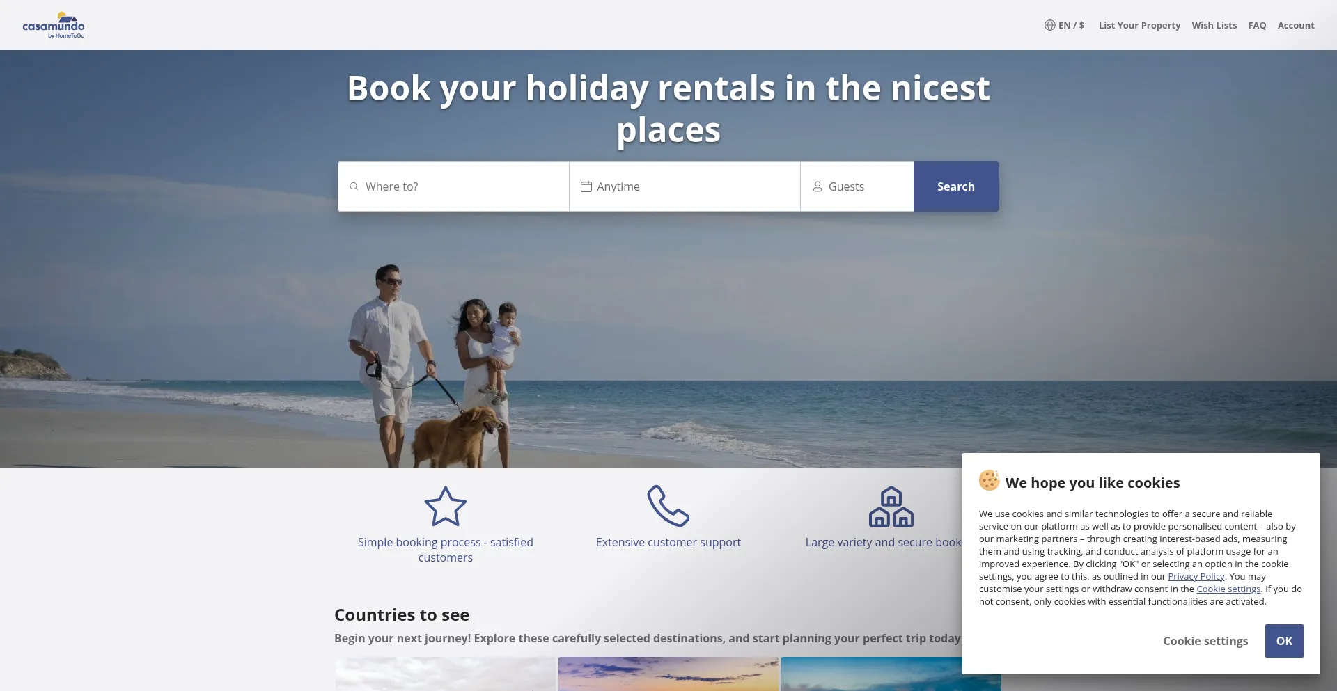 Book now for low-priced holiday homes and apartments - secure and effortless booking with Casamundo - simply my holiday