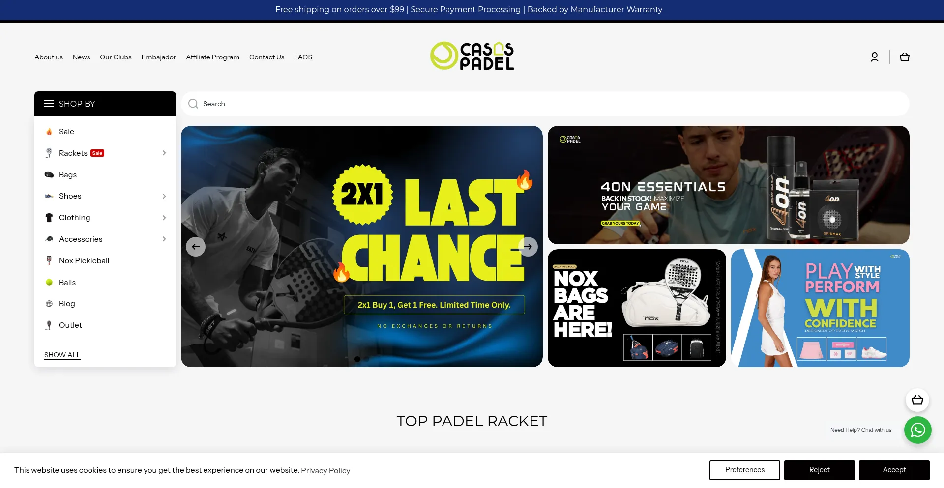The Premier Destination for High-Quality Padel Racket Sports Products in the USA. Official Retailer of NOX, Bullpadel, Head, Wilson, Adidas & More. Enjoy Free Shipping on Orders...