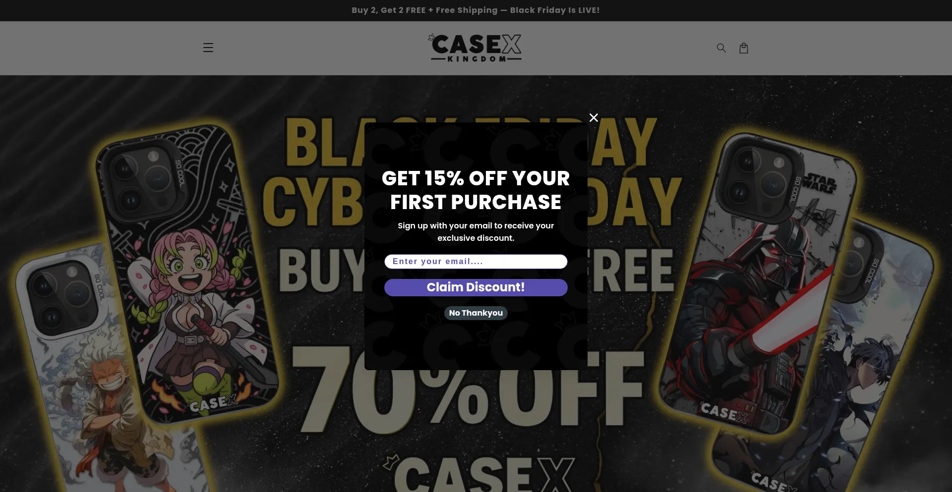 Our analyzer determines that website casexkingdom.com is using Shopify CMS. Shopify is a popular e-commerce platform, powering around 4.4% of websites globally.