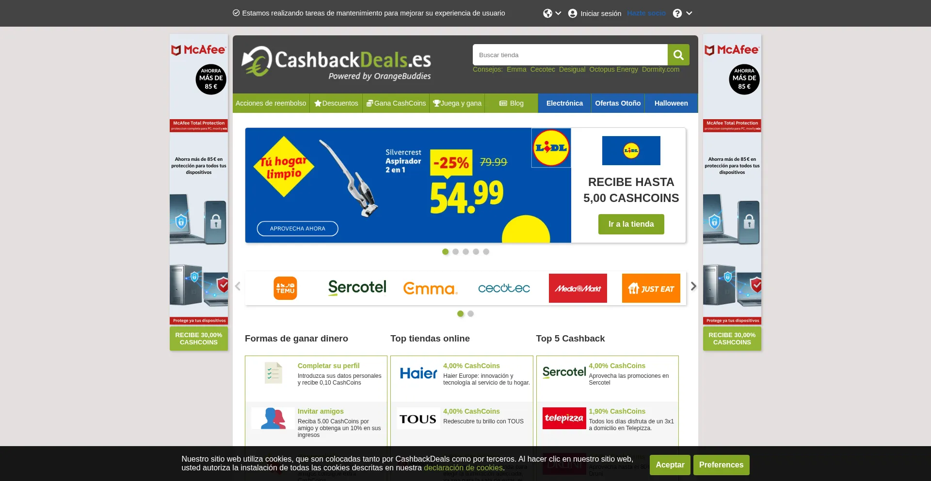 Nuestro sitio web utiliza cookies, que son colocadas tanto por CashbackDeals como por terceros.