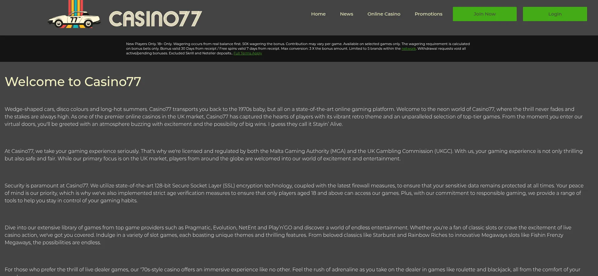 Welcome to Casino77.com a UK licenced online casino. Enjoy a Welcome Bonus of up to £200. (T's & C's Apply) 18+. Play Responsibly.