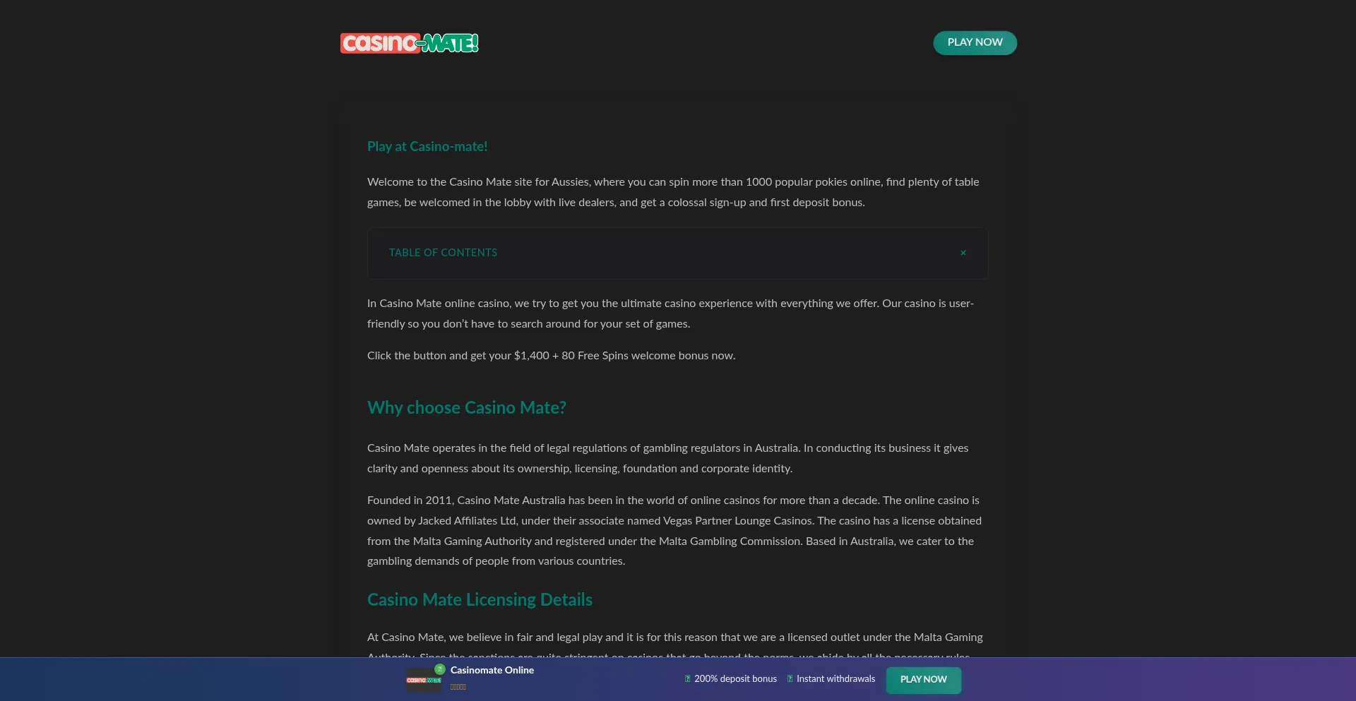 Join Casino Mate, a top Australian online casino licensed by the MGA. Enjoy over 600 games including pokies, poker, blackjack & roulette. Benefit from generous bonuses, VIP rewa...