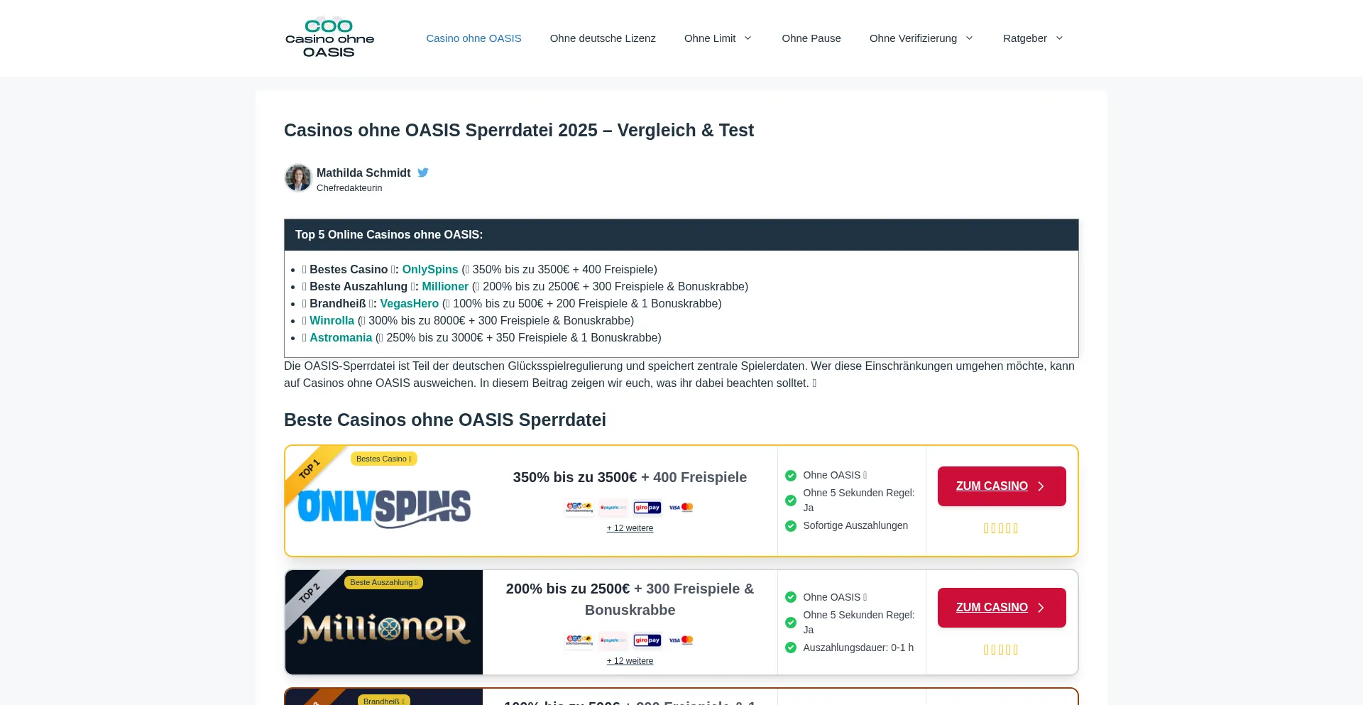 Ihr sucht nach den besten Online Casinos ohne OASIS? Hier findet ihr alles zur OASIS Sperrdatei und den Top Casinos ohne Sperrsystem! ⭐