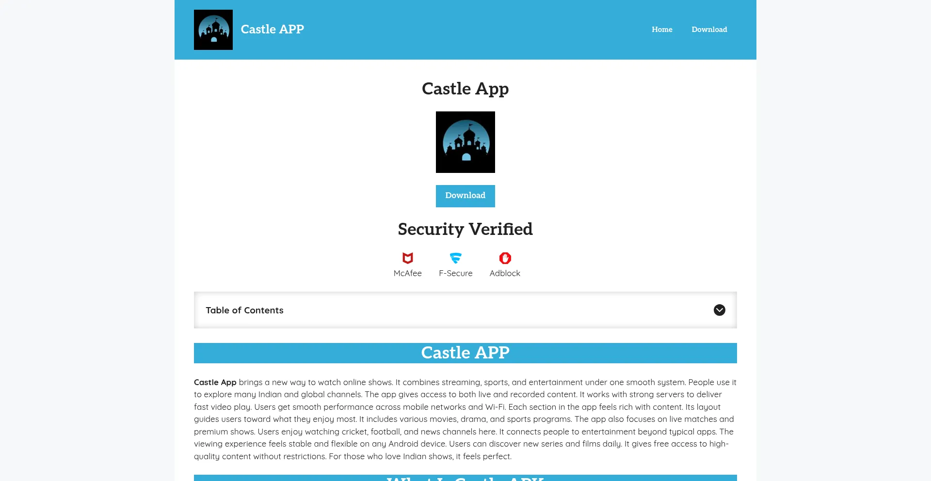 Castle App is a streaming hub for live TV channels, live sports, diverse collections of movies, series, and video content.