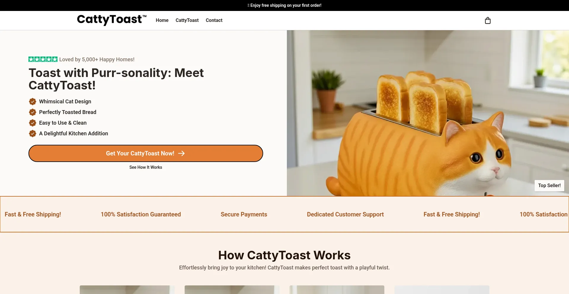 Cattytoast.com exhibits characteristics consistent with scam-like e-commerce operations. The site appears to accept payments while customer reports suggest data collection issues.