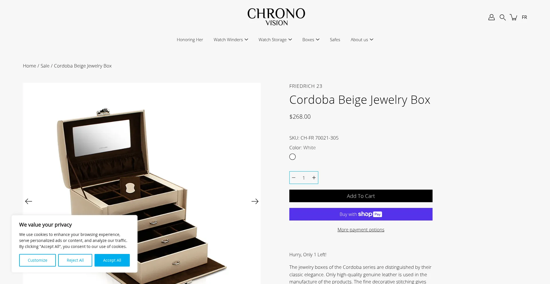 The jewelry boxes of the Cordoba series are distinguished by their classic elegance. Only high-quality genuine leather is used in the manufacture of the products. The fine decor...